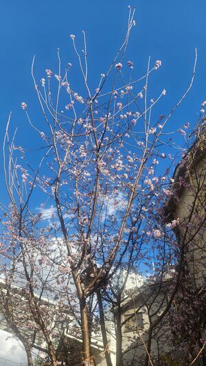 駅前の公園では、早咲きの桜が咲いている!・・・と思ったら「十月ざくら」!