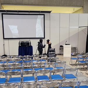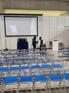 今日はサロン業務を少しした後、明日からの準備のために ブースの設営やセミナールームで行うプレゼンテーションのリハーサルに会場へ。