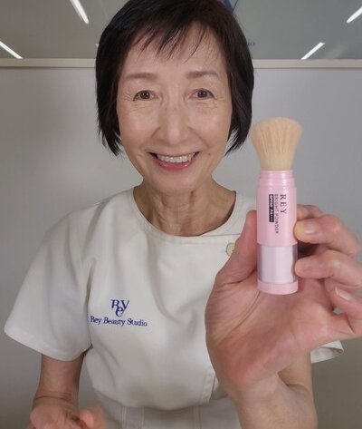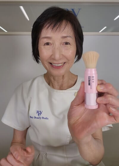 ハケからUVパウダーが自動的に出て、手を汚さずに外出先でもお化粧の最後の仕上げにも使えて大変便利。