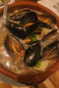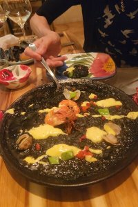 いつも必ず食べていた、自家製パンやイワシのマリネ、オリーブ、イベリコ豚、サラダなども美味しかったのですが、テリーヌ、ムール貝やイカスミのパエリアの美味しさには感動!