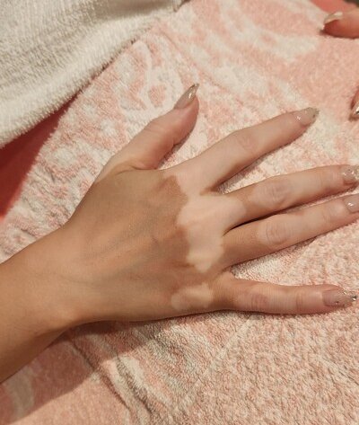 白斑とは、皮膚のメラニン色素がなんらかの原因で作られなくなり、色素が抜けてしまう疾患。