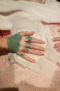白斑でない肌色の上に強烈なピーリングをし、プラセンタ、EA フォース、モデリングマスクで仕上げたら、肌色が白くなり、少し目立たなくなり、お客様も大喜び!