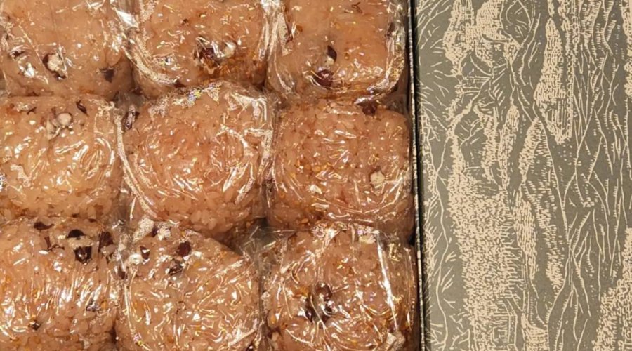お赤飯の中にまんじゅうが入っているこんな和菓子は初めて!ビッ …